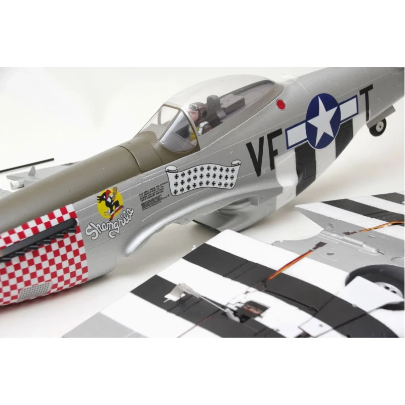 ARROW RC P-51 MUSTANG – 1100MM – PNP – W/ ELECTRIC RETRACTS -AS-AH004P, deze wordt geleverd met ingebouwde servo’s, borstelloze electro motor, snelheids regelaar, en vele klein onderdelen Incusief intrekbaar landings gestel