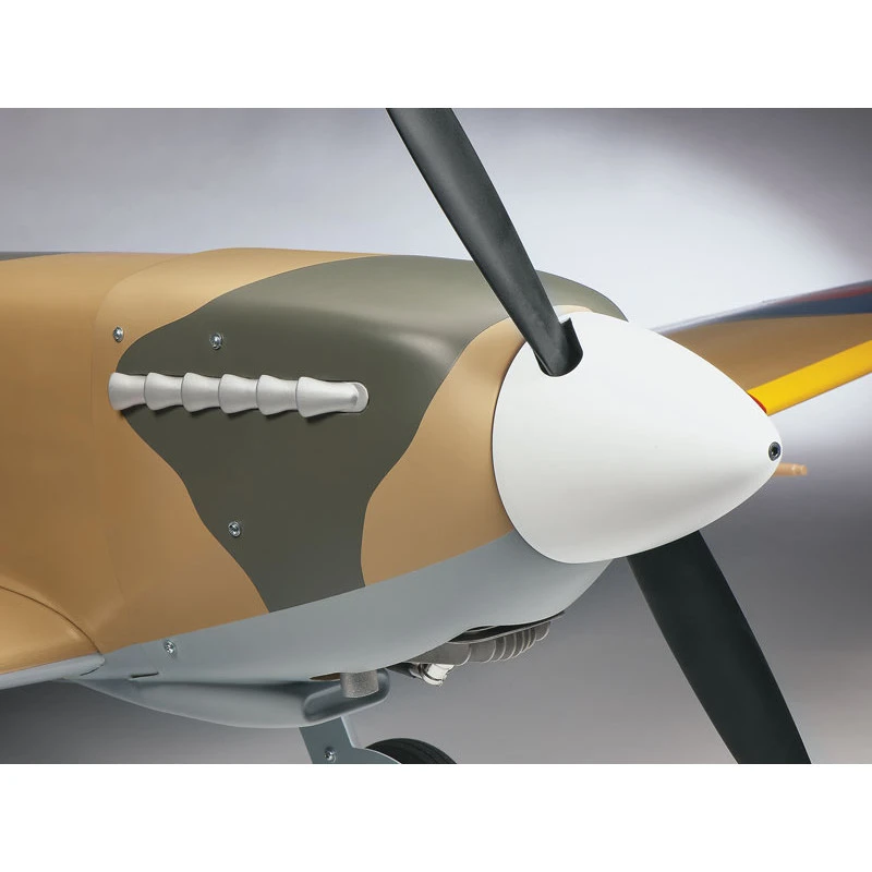 Spitfire MK IX Giant is een warbird schaal vliegtuig van Top Flite, deze wordt geleverd als Almost Ready To Fly vliegtuig. De vleugel bouw je dmv van ribben en gefolied, en de romp is van spantenbouwwijze en gefolied. Incl. vele klein onderdelen.