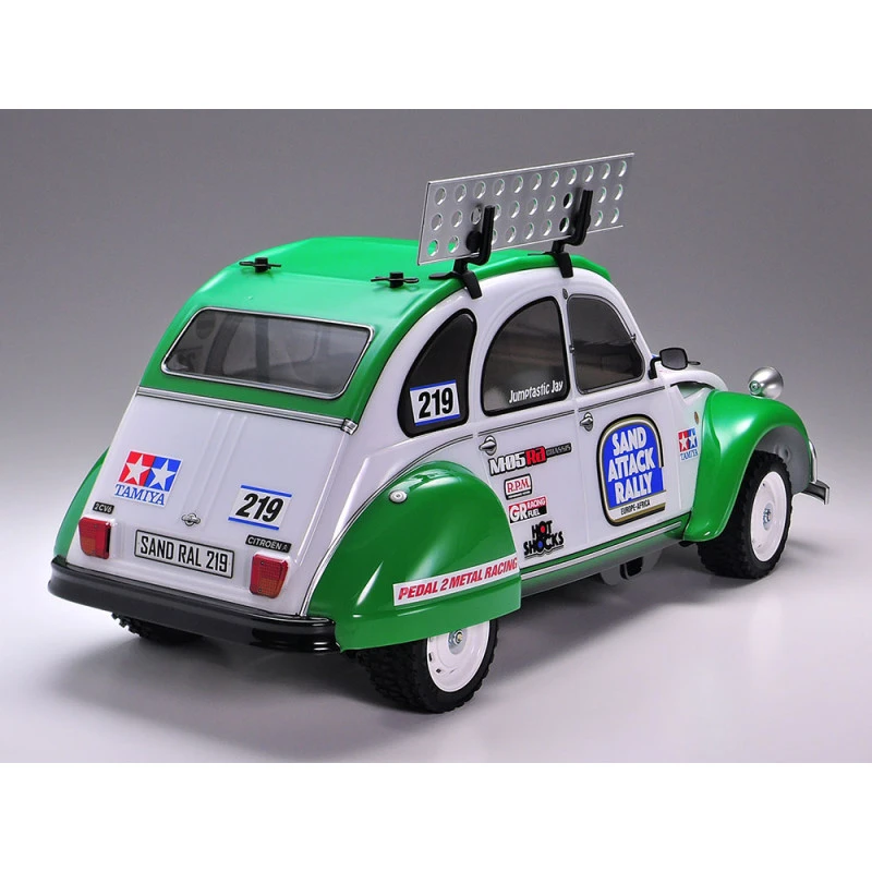 Citroën 2CV Rally (M-05Ra) -58670 is een 2 wd aangedreven elektro auto in schaal 1/10 van Tamiya, deze wordt geleverd incl. Elektronische snelheids regelaar, lexaan body parts, en heeft onafhankelijk geveerde wielophanging en RS 540 motor