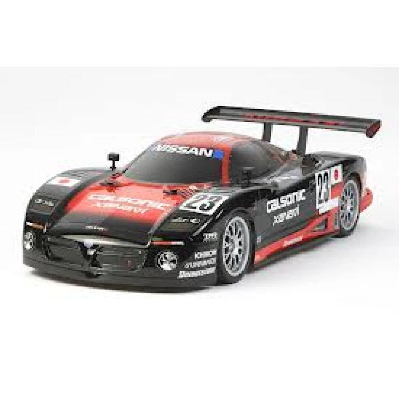 Nissan R390 GT1 Type E chassis is een 4 wd aangedreven elektro auto in schaal 1/10 van Tamiya, deze wordt geleverd incl. Elektronische snelheids regelaar, lexaan body parts, en heeft onafhankelijk geveerde wielophanging en RS 540 motor