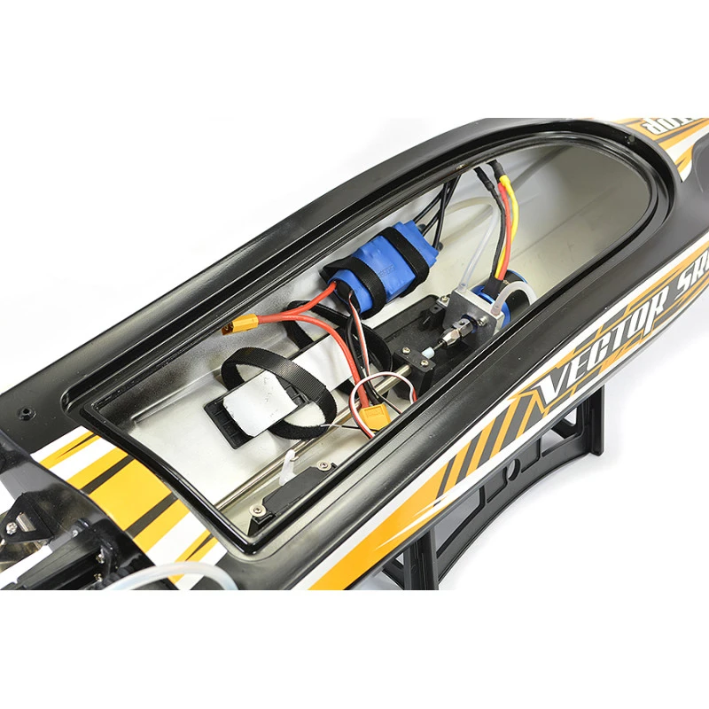 Volantex VOLANTEX VECTOR SR80 BRUSHLESS BOAT BLACK/ORANGE -V798-4 is een electro aangedreven speedboot van Volantex, deze wordt geleverd met, zenderset met ontvanger, ingebouwde stuurservo brushless motor en electronische snelheid regelaar en vele klein onderdelen, de romp is van ABS en op kleur gespoten